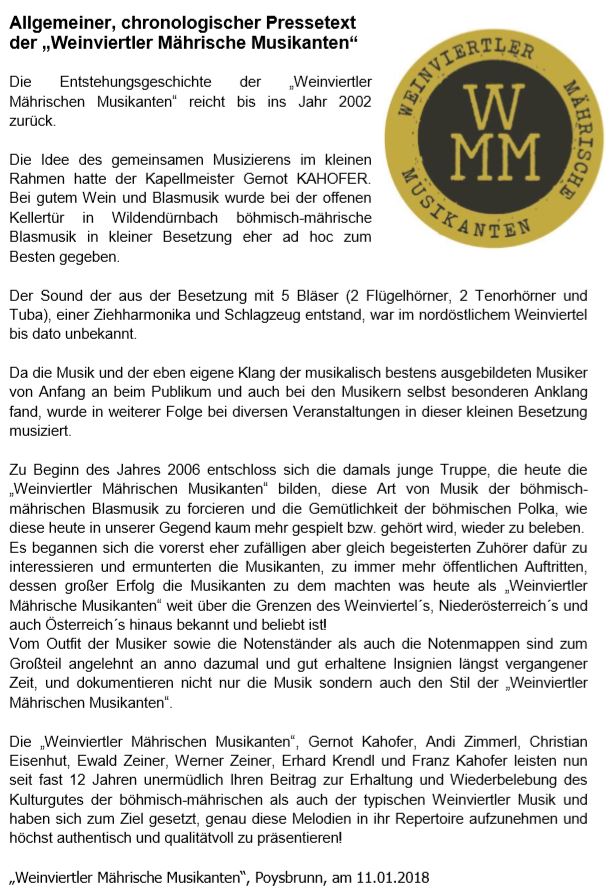 Evergreens und neue Titel der Weinviertler Mährischen Musikanten!